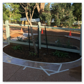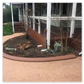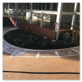 When installing Unique Kerbing around pavers, concrete or existing synthetic grass, we also cover these areas with plastic before the install begins.