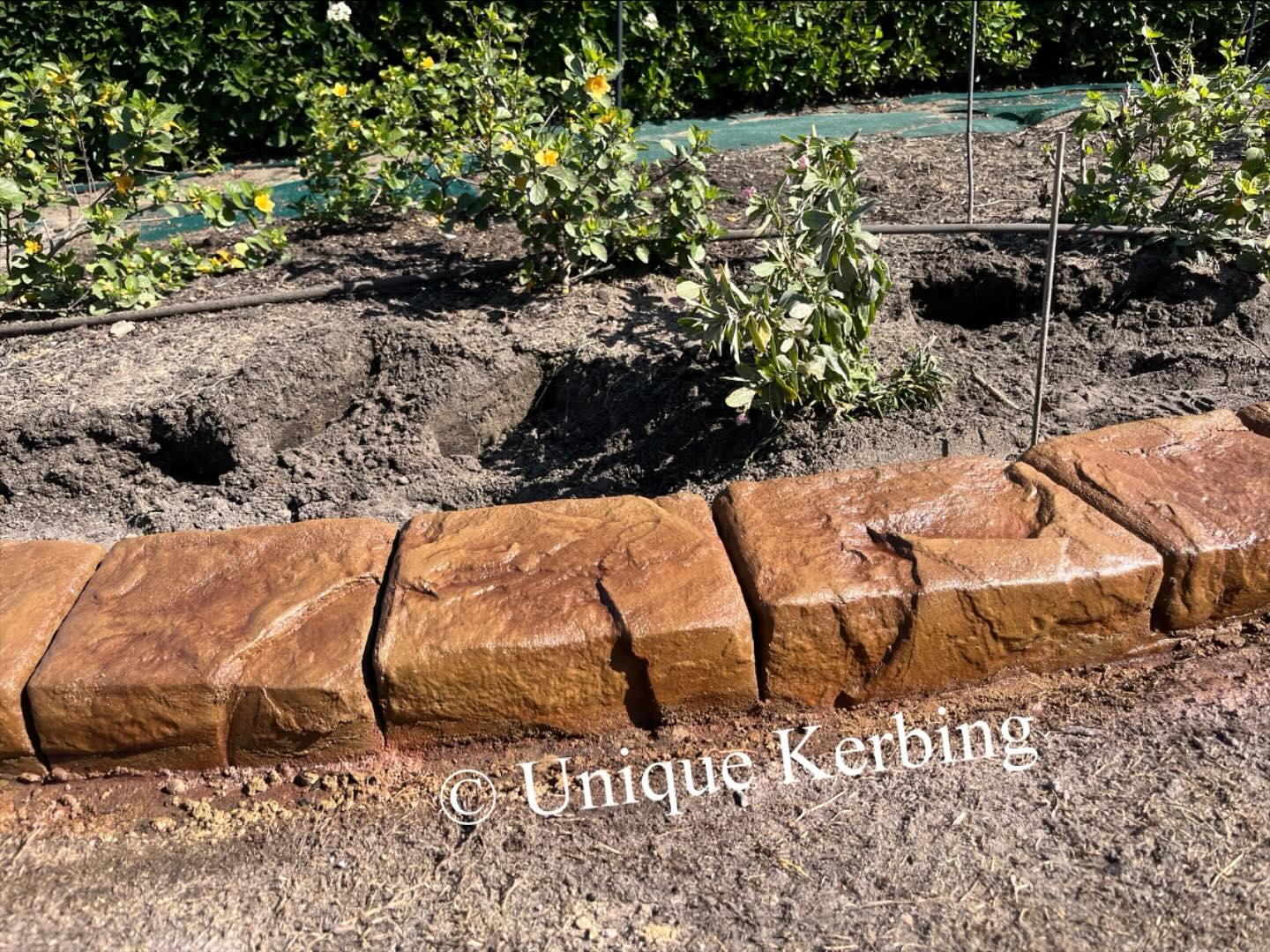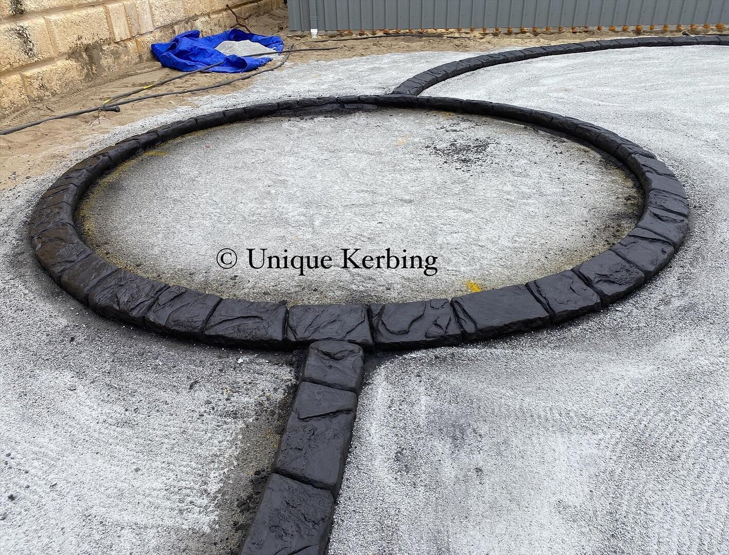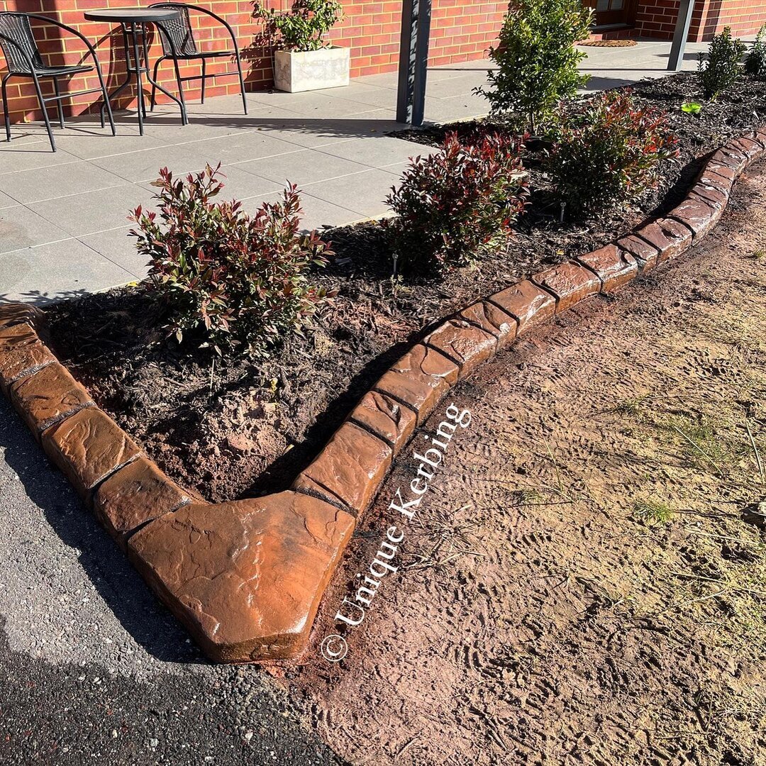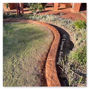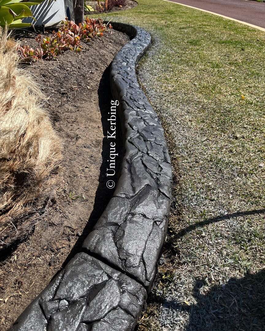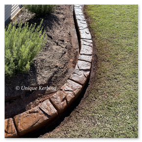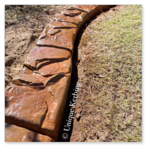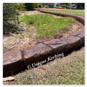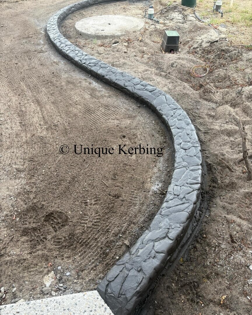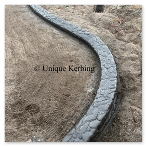 Our Rock Kerbing is Machine laid continuous concrete, which is hand sculpted, textured, coloured and sealed.