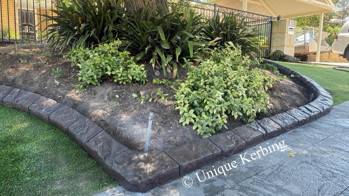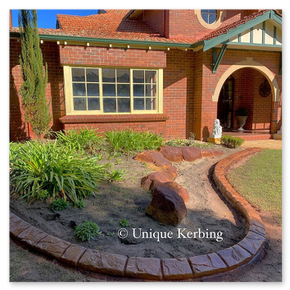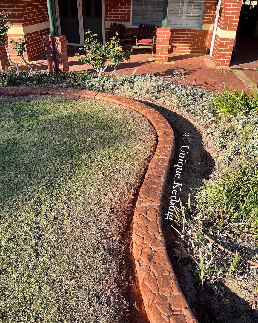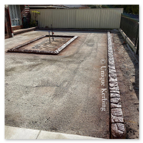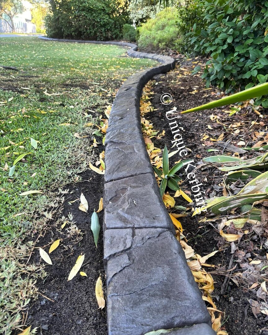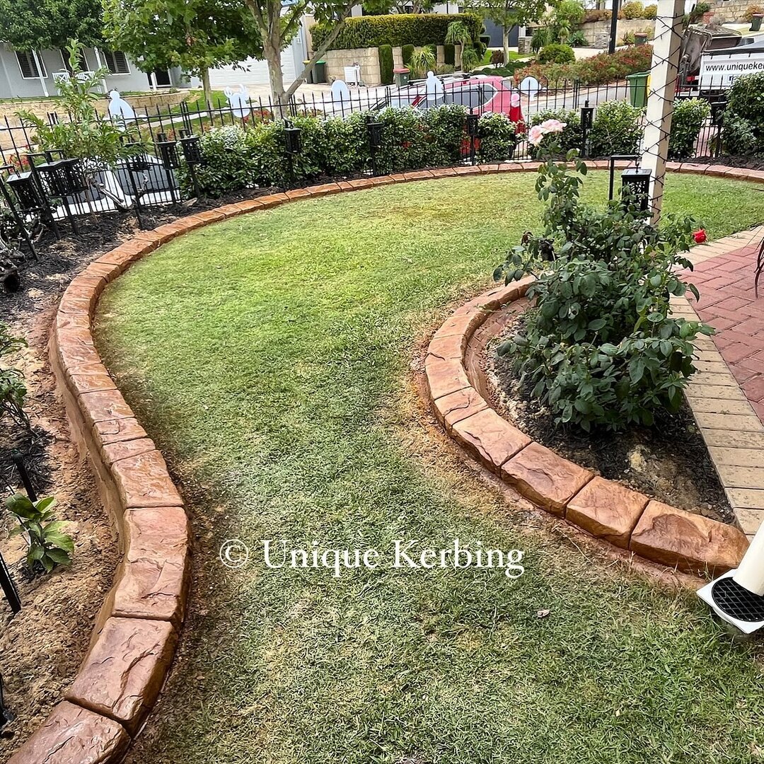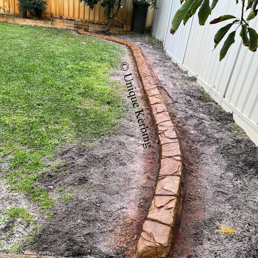 Our Rock Kerbing is Machine laid continuous concrete, which is hand sculpted, textured, coloured and sealed.