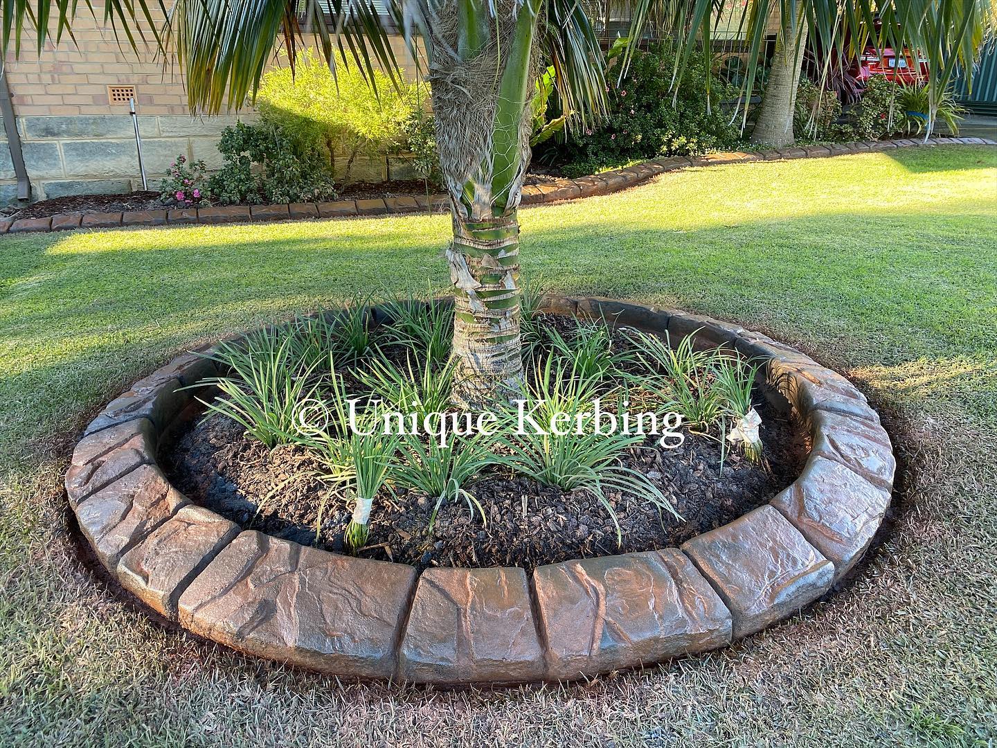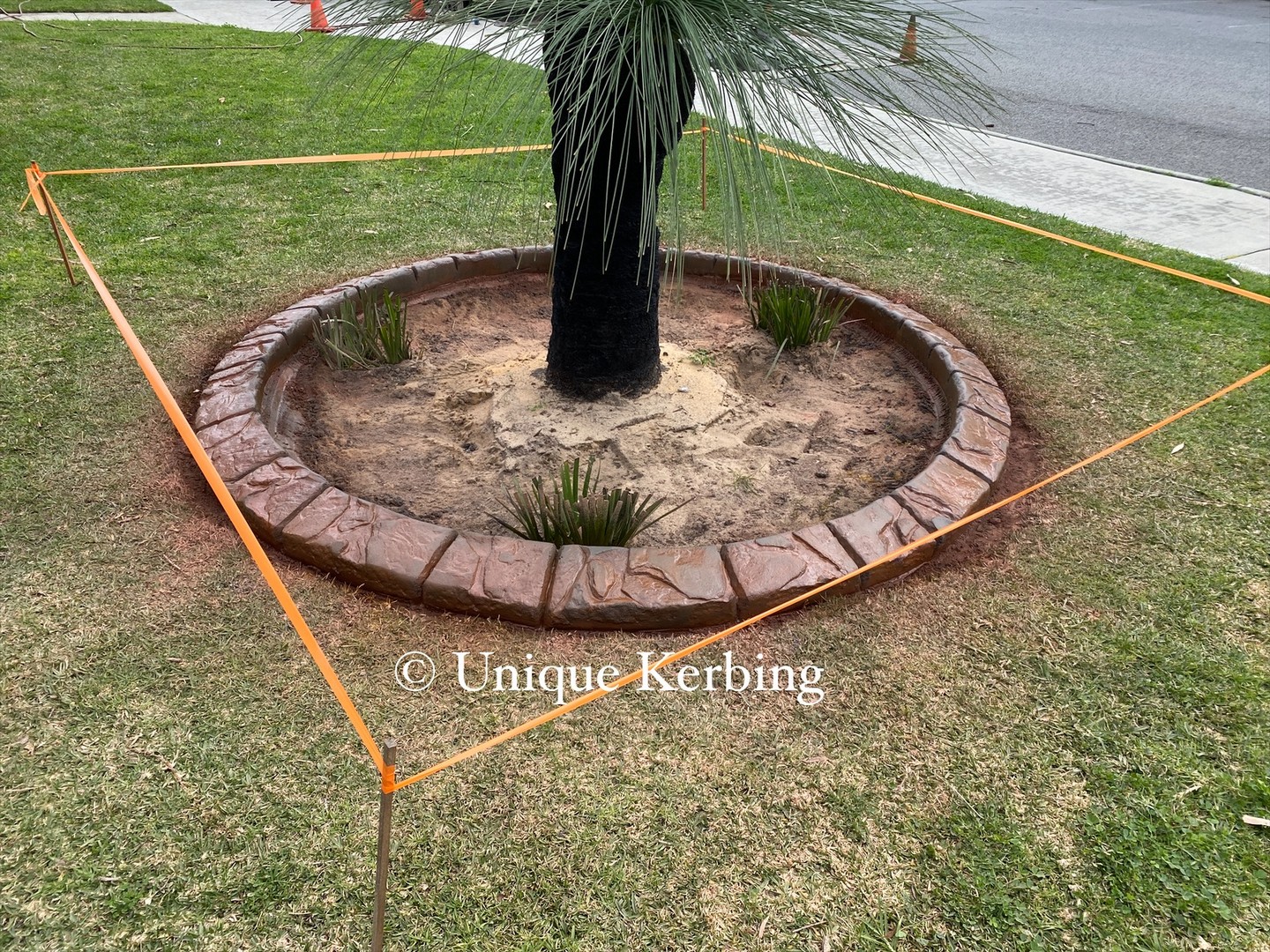 Our Rock Kerbing is Machine laid continuous concrete, which is hand sculpted, textured, coloured and sealed.